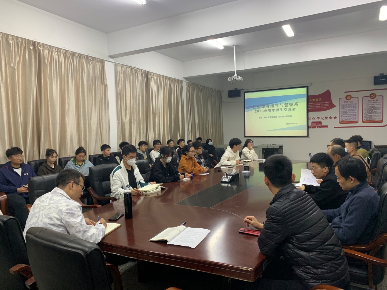 (通讯员 李小进)4月2日晚7时,社会体育指导与管理系在bwin必赢中国官网会议室召开了“师生交流面对面,凝心聚力促发展”主题师生交流会,社会体育指导与管理系主任牛丽丽、党支部书记夏昌辉、各专项课教师、各年级班主任以及各年级班长、学委、团支书、专项班小班长参与本次交流会。