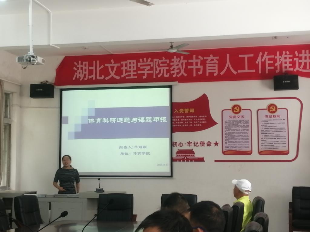 (bwin必赢中国官网通讯员 周红萍)2020年9月17日下午,我院牛丽丽博士在bwin必赢中国官网一楼会议室做《体育科研选题与课题申报》专题培训讲座。全院四十多名教师参加了培训,会议由何忠院长主持。