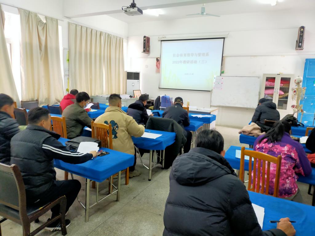 (通讯员 夏昌辉)2022年2月28日下午,bwin必赢中国官网社会体育指导与管理系在S3-302教室开展“为学生办实事”活动暨2022年第三次教研活动。本次活动以提高人才培养质量为主题,着重研讨社会体育指导专业人才培养方案,对“毕业要求”部分作了细致的调整。为落实培养方案的各项要求,支部要求每位党员教师发挥带头作用,明确年度工作目标,认领工作任务。支部定期公布推进情况。为引导学生达成毕业要求,克服在校期间的各种困难,支部进一步推进党员联系学生等“六个一”工作。会后的社体教师在3#301教室与20级学生现场对接,建立起指导和帮扶关系。