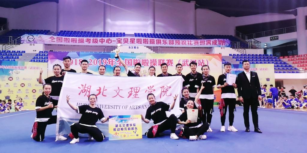 (bwin必赢中国官网 通讯员 王美楠 杨扬继翔)近日,2018-2019年全国啦啦操联赛(武汉站)暨2019湖北省普通高等学校大学生啦啦操赛于5月10-12日在武汉东湖学院举行。我校代表队在bwin必赢中国官网教师王美楠的带领下,获公开青年乙组集体自由舞蹈自选动作第一名,公开青年乙组花球校园啦啦操示范套路(2016版)第二名的好成绩。