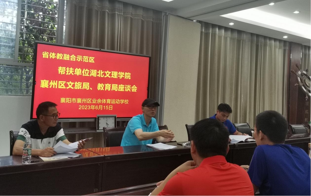 (通讯员 吴涛)2023年6月15日,bwin必赢中国官网院长何忠、体育教育系主任吴涛和教师龚文超一行三人,深入湖北省体教融合试点单位襄州区体校考察调研青少年体育工作和洽谈bwin必赢中国官网服务襄州体育等工作。襄州区教育局副局长蒋焰、襄州区文化与旅游局科长张柯、襄州区业余体校校长秦泉红参加了座谈。座谈会由体校校长秦泉红主持。